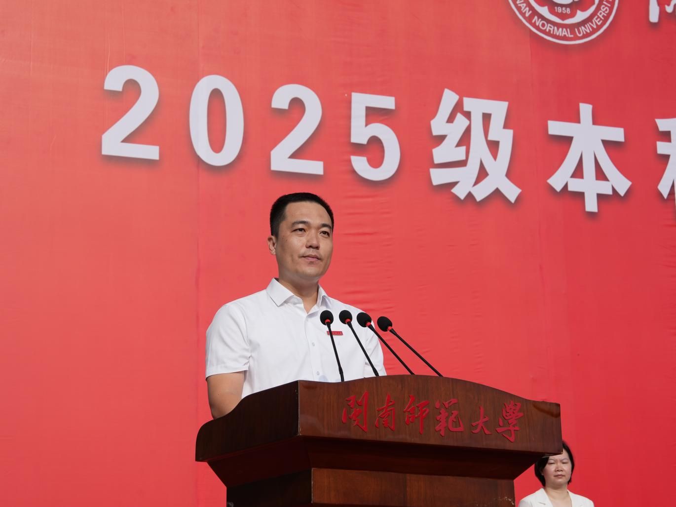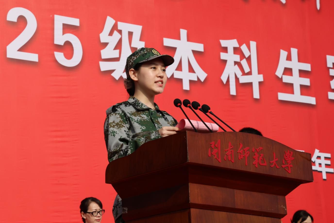 青春逐梦正当时,迷彩戎装展风华。10月11日上午,我校在江滨校区西区田径场和圆山校区篮球场同步举行2025级本科军训动员大会。中国人民解放军某部大校政委陈程,漳州军分区政治工作处上校主任王献辉,芗城区人民武装部上校部长王锐,校党委副书记廖志丹,校党委常委、副校长张宏怡出席大会,学校相关部处及各学院负责人、新生辅导员、2025级全体参训学生共同参加大会。动员大会由校学生处处长、校人民武装部部长蔡斌主持。