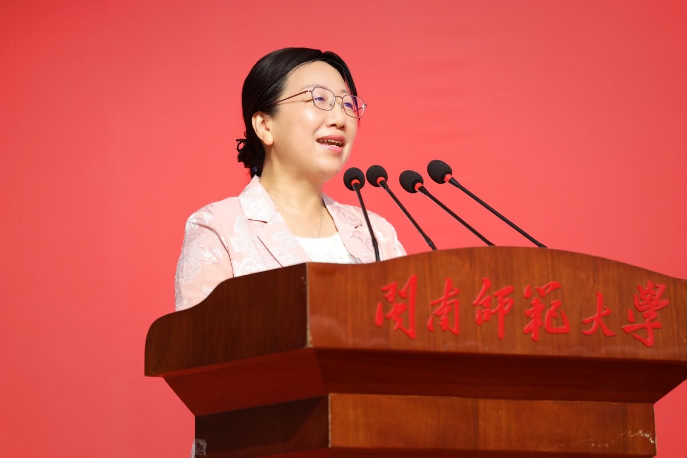 会上,校党委常委、副校长张宏怡向闽南师范大学军训团授旗。沙场点兵秋意劲,青春砺剑正当时,一支支参训队伍整装待发,军训团旗在秋日微风中猎猎飘扬。