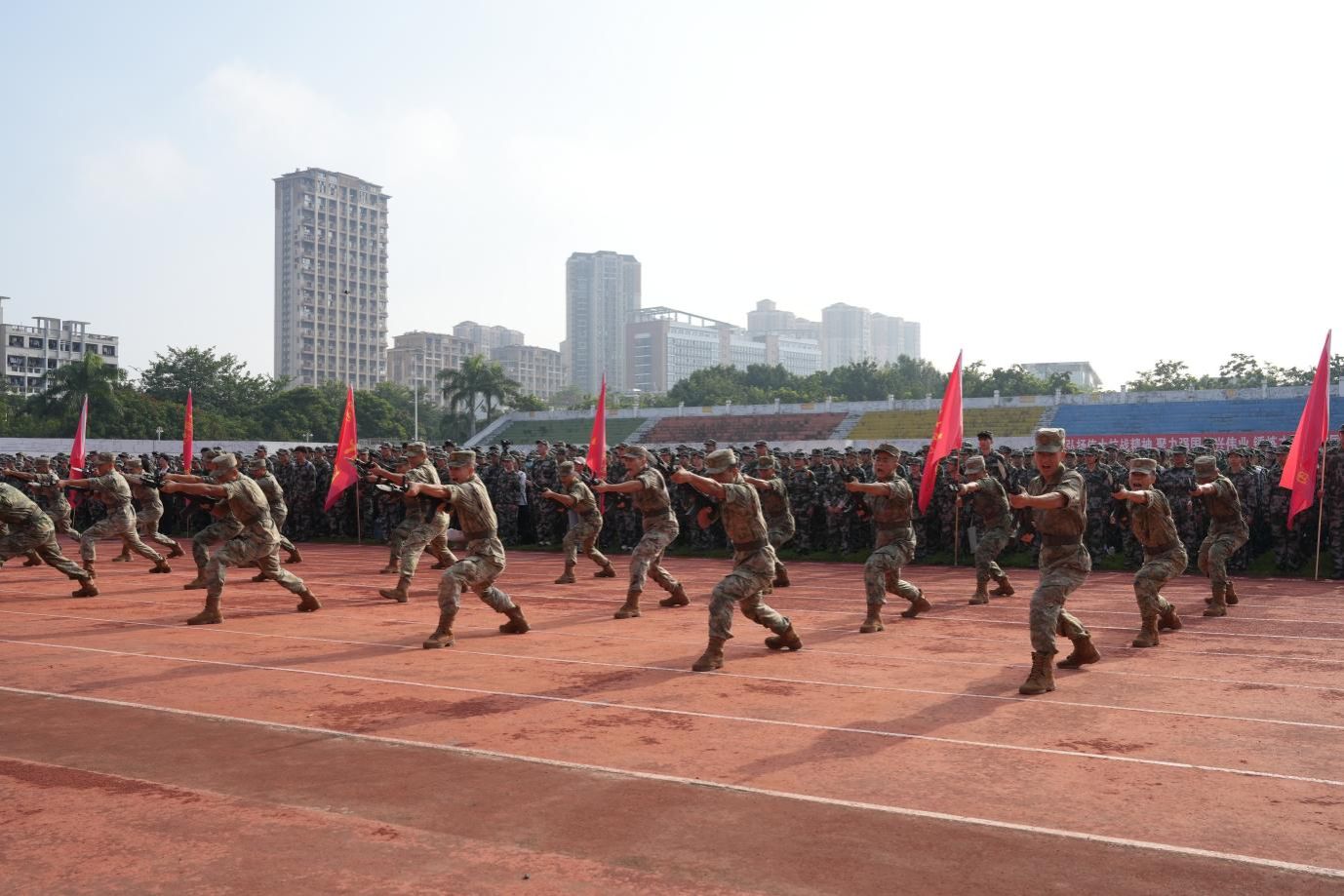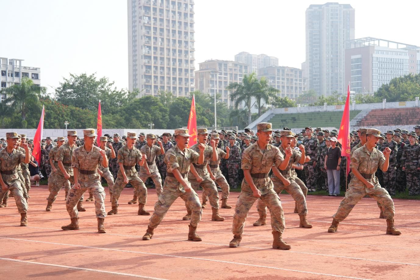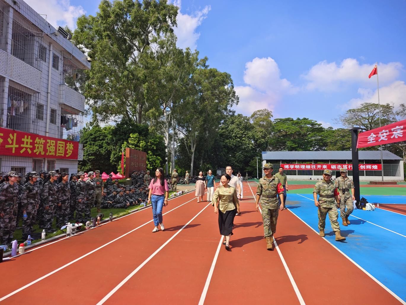 教官代表蔡国庆表示,全体教官将严格履行职责,以专业的标准、严谨的态度精心施训,勉励同学们敢于吃苦,严守纪律,团结协作,在军训的历练中蜕变成长。