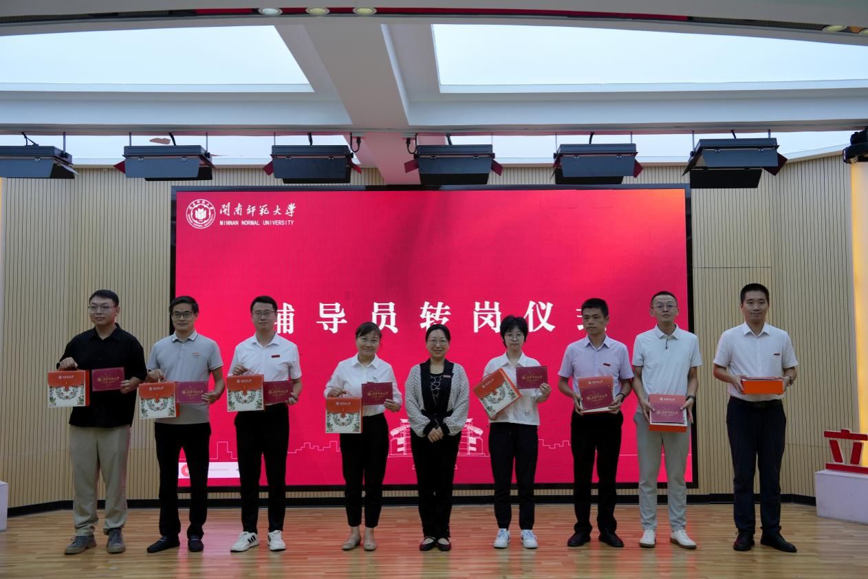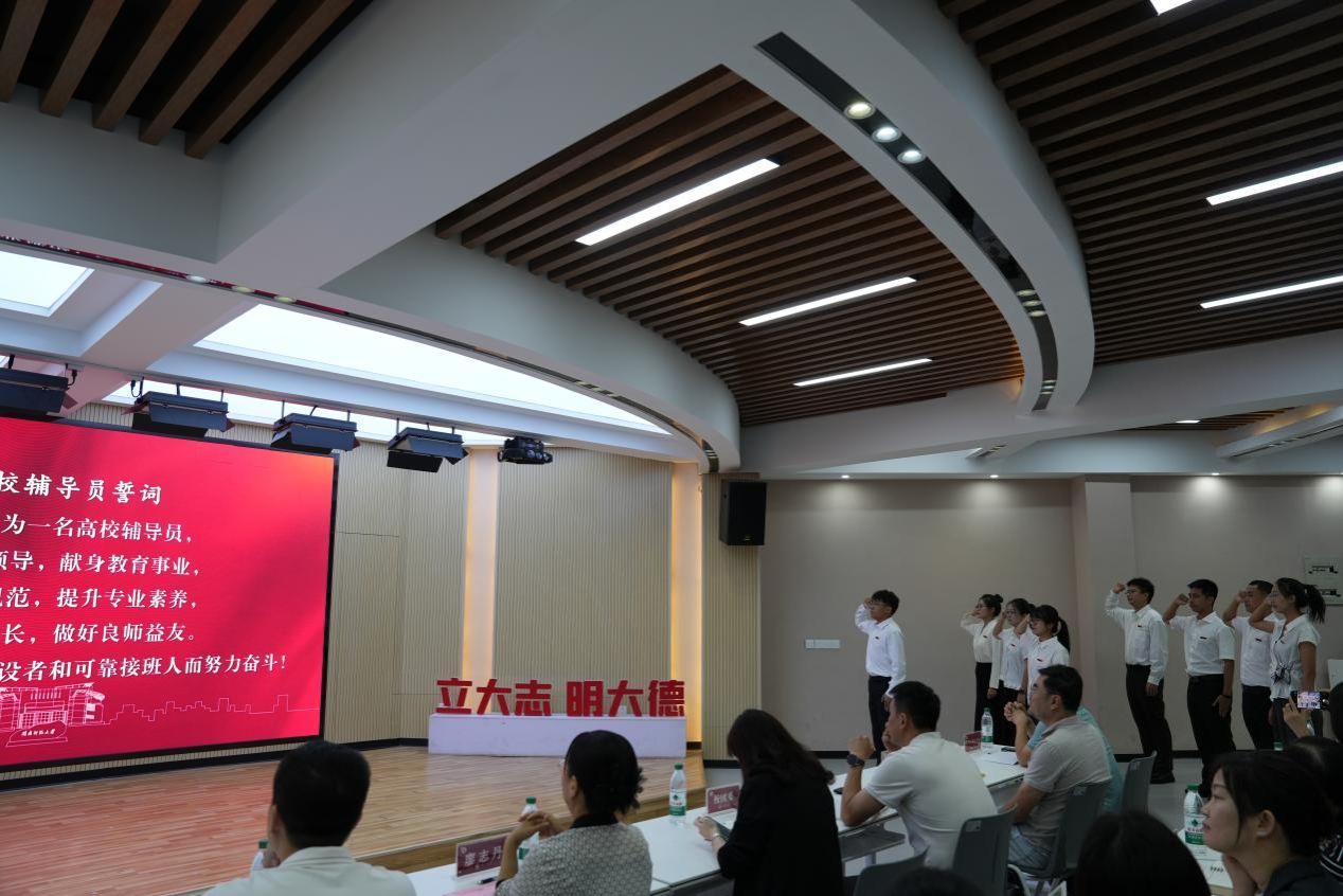 会上,举行了新辅导员入职宣誓仪式和辅导员转岗仪式。8名新辅导员集体宣誓,承诺在未来的工作中不忘入职初心、牢记育人使命,始终做学生的知心人、热心人和引路人。