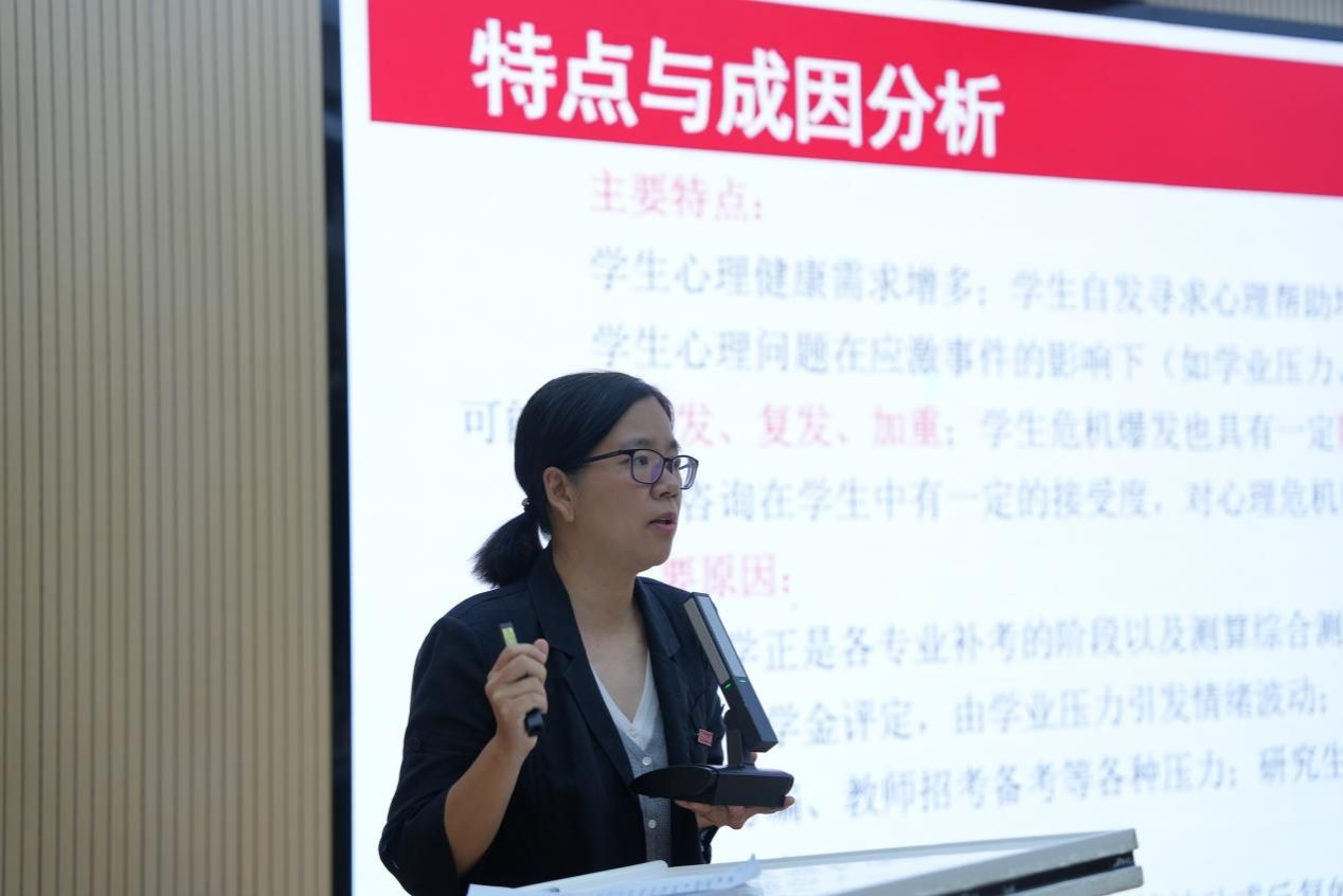 ▲心理健康教育咨询中心主任陈虹作学生心理健康分析
