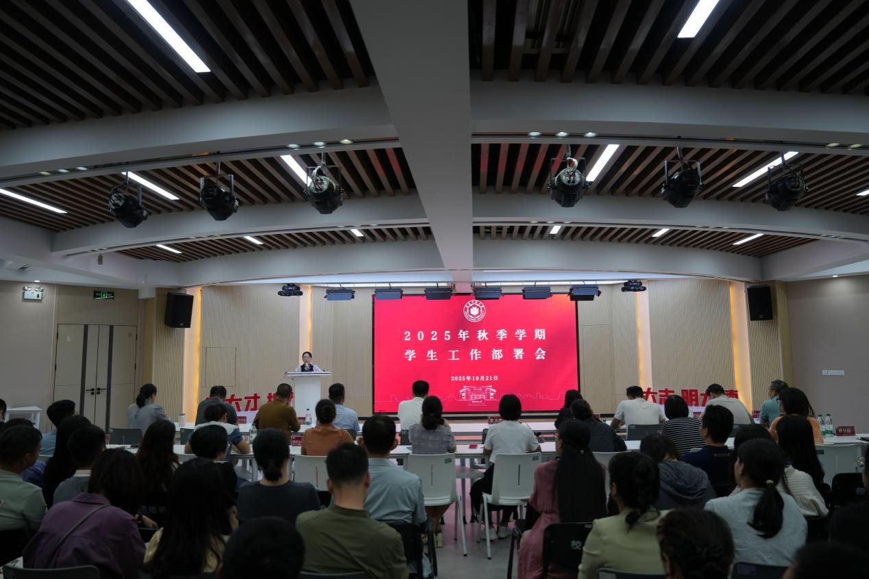 为扎实推动学生工作稳中求进、提质增效,10月21日上午,我校在达理学生活动中心三楼多功能厅召开2025年秋季学期学生工作部署会。校党委副书记廖志丹出席会议,学生处、校团委全体教职工、各学院分管学生工作副书记和全体辅导员参加会议。