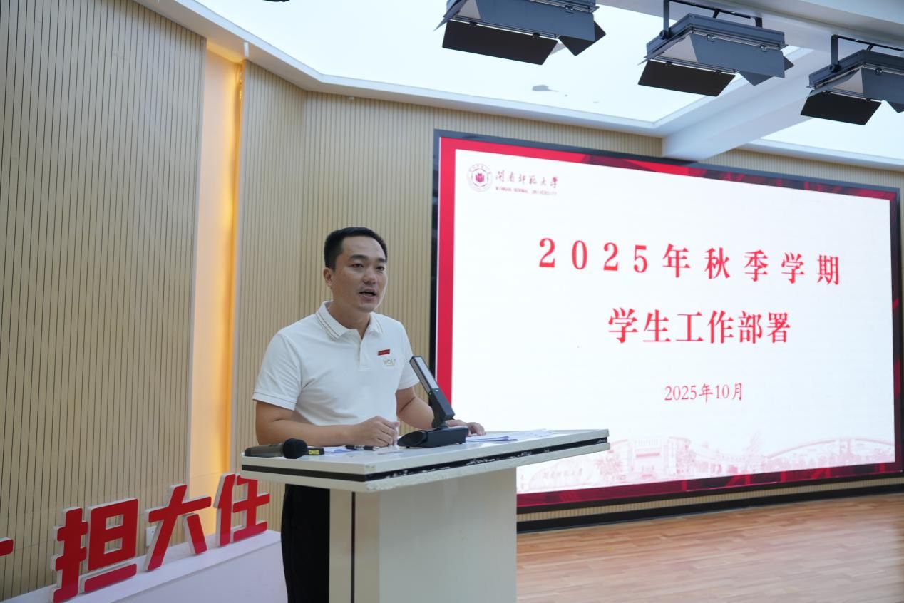 学生处处长蔡斌对秋季学期学生工作进行具体布置,从构建“大思政”体系、深化“精细化”管理、拓展“多渠道”服务、增强“立体式”赋能四个维度,对本学期学生工作推进重点做了布置,提出目标要求。