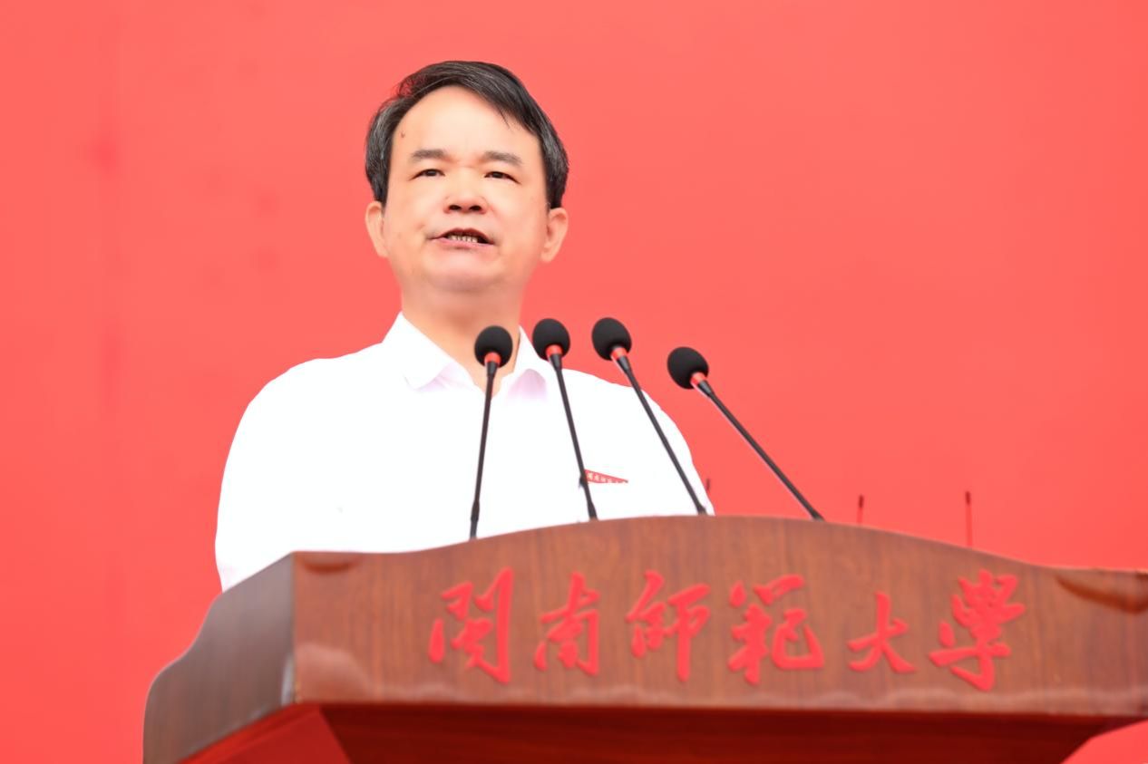 校党委副书记、校长张龙海在大会上发表讲话。他指出,军训是进入大学校园的一堂必修课,也是一场淬炼意志、砥砺品格的青春洗礼。军训时光虽然短暂,但能成为镌刻在同学们成长轨迹中的价值印记。他要求同学们以至诚报国的担当,不断拓展人生格局和精神高度。将个人的前途和国家、民族的命运紧紧地结合在一起,将美好青春投入到对祖国、民族和人民的无私奉献中。以坚忍不屈的执着,始终树立自强意识和正确航向。继续保持在军训中展现出来的拼搏奋斗姿态,善于在人生发展的各个阶段中,重新定义自己人生的新高度,在求知道路上勇攀高峰,在拼搏奋斗中砥砺未来。以博学慎思的智慧,坚持恪守纪律底线和笃实作风。把令行禁止、自律服从的优良作风带进全新的大学生活,养成按时作息、坚持锻炼的健康生活习惯,把自律作为求知问学的自我要求和砥砺人生品格、培养文明道德的行为规范,为实现人生价值奠定坚实的根基。