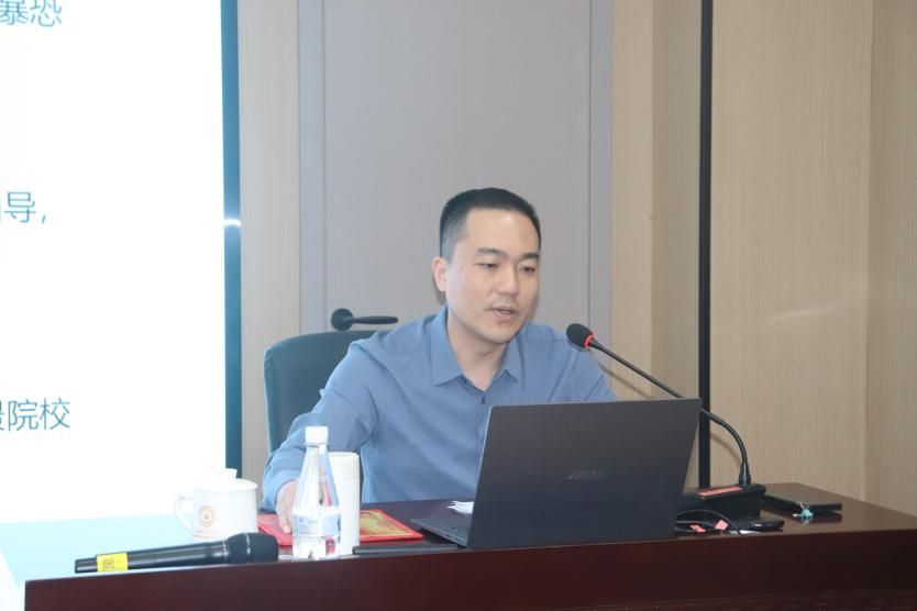 随后,物理与信息工程学院辅导员吕海铭分享了参加全国辅导员专题培训的学习收获,围绕辅导员工作室建设,介绍了其他高校在整合师范专业资源、探索“互联网+创新模式赋能”方面的育人实践。