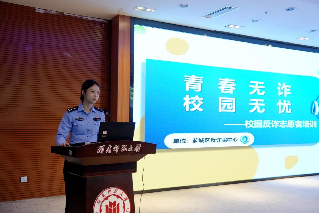 芗城区反诈骗中心负责人杨小娟警官结合PPT讲解,对志愿者进行培训,她勉励同学们当好防范诈骗的“宣传员”、预警防范的“信息员”、风险隐患的“观察员”和警校联动的“联络员”,切实履行好工作职责。