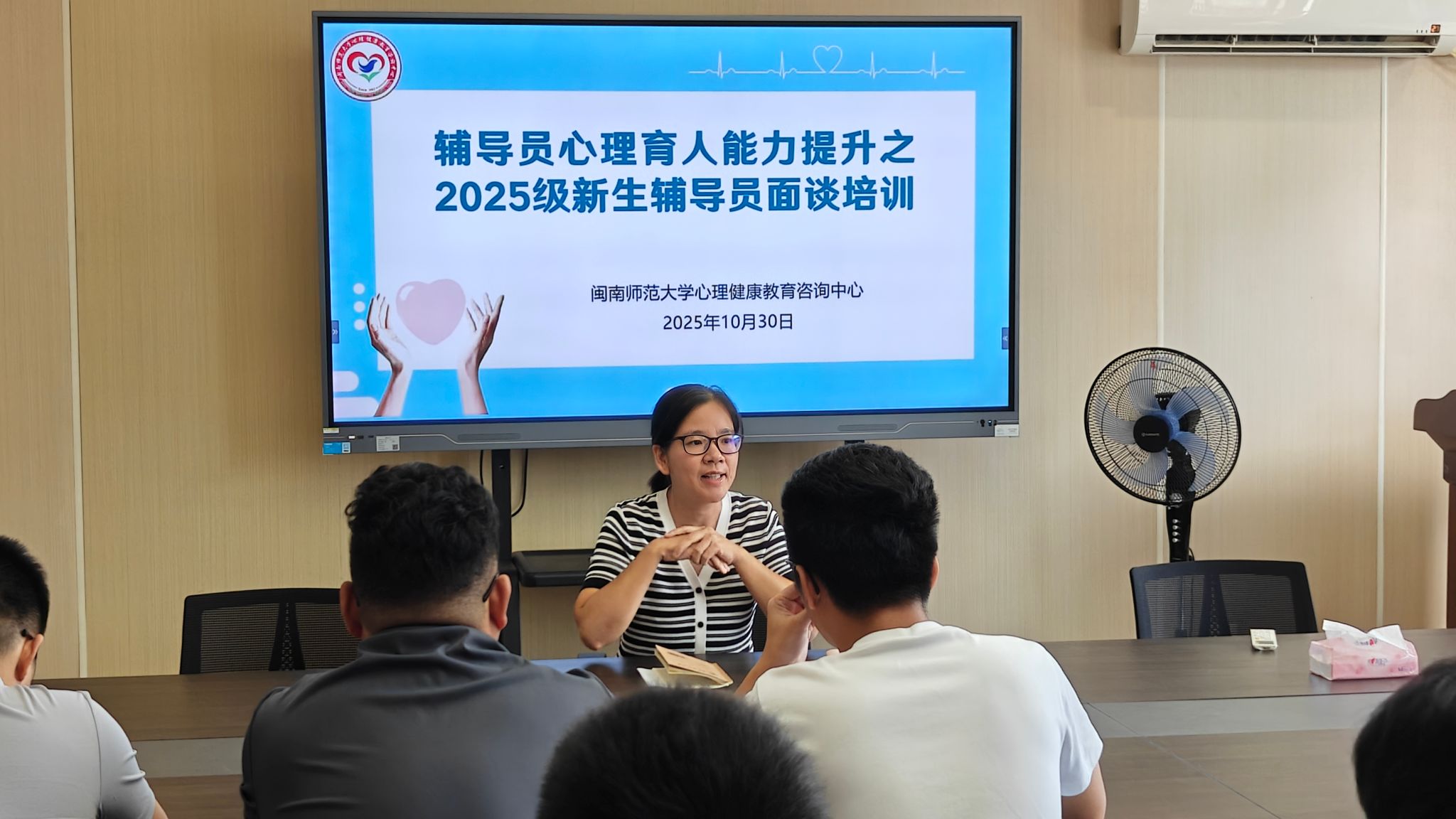 为提升新生辅导员心理育人工作的专业性与有效性,为新生心理健康护航,筑牢校园心理防线。10月30日上午,心理健康教育咨询中心组织开展“新生辅导员谈话谈心技能”专题培训,心理健康教育咨询中心老师及全体新生辅导员参加。